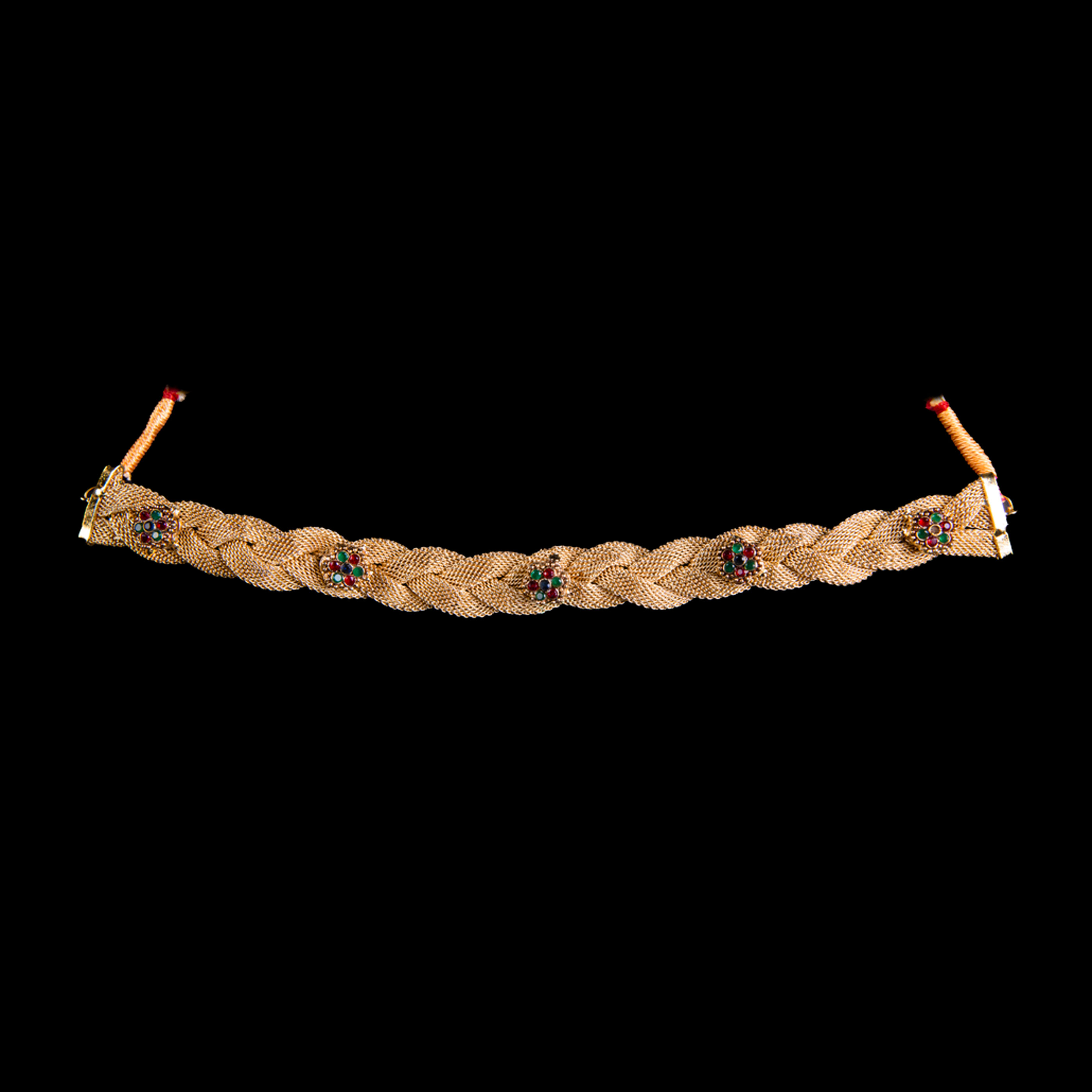 Tags: ed and green zircon stones, golden choker, floral motifs